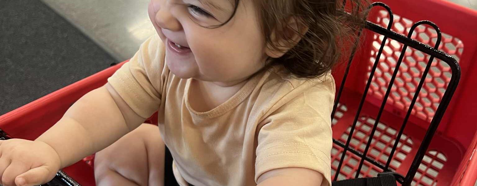 I agreed, and started off the trip smiling, even from the parking lot of the store, when Mavis made it clear that I was still the only one she wanted pushing any cart she was sitting in.