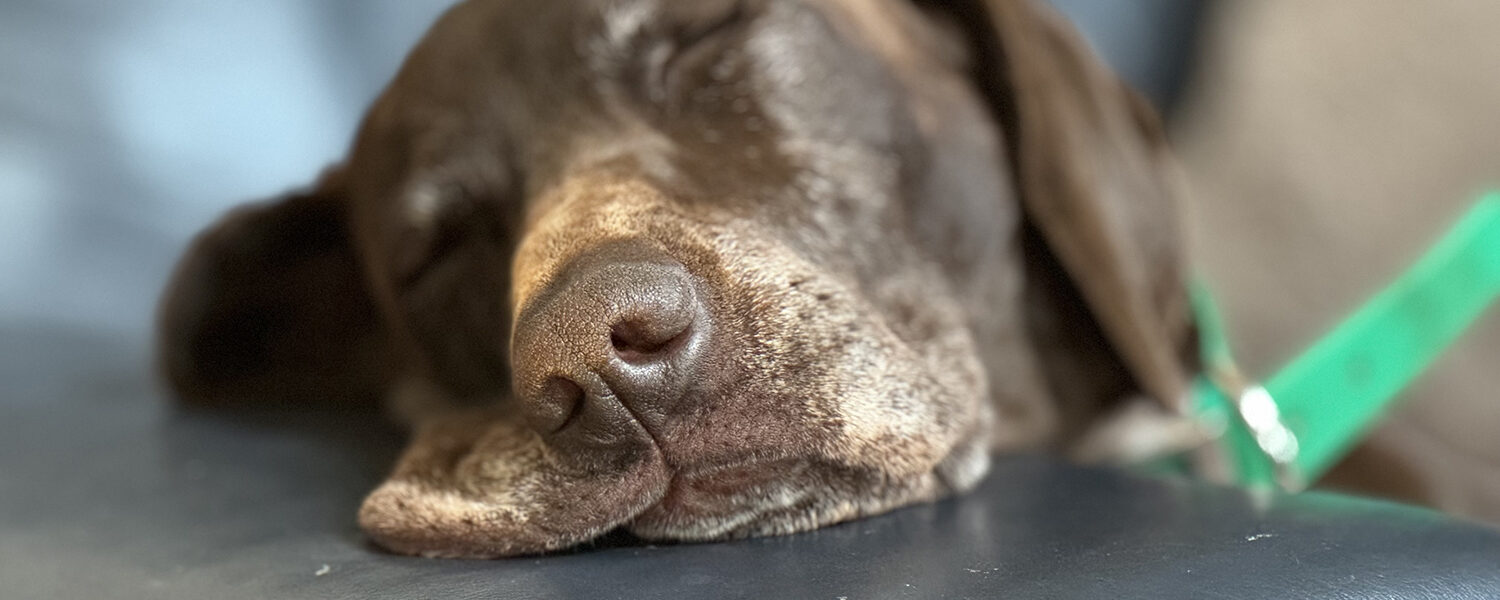Mavis is my most high-strung pooch and at times, acts like a goat. A 45-pound goat. By that, I mean she stands on furniture in various random poses. Under the influence of the meds, she began a game of “The floor is lava.” She proceeded to hop from one piece of furniture to another without touching the ground. Her eyes were glassy, and I was worried for her safety. Kara looked at me with a very serious face and said, “I think she thinks she can fly.” She may have been right. This dog was loopy. She also wanted me to get Mavis a cape with an “M” on the back. She is a super dog.