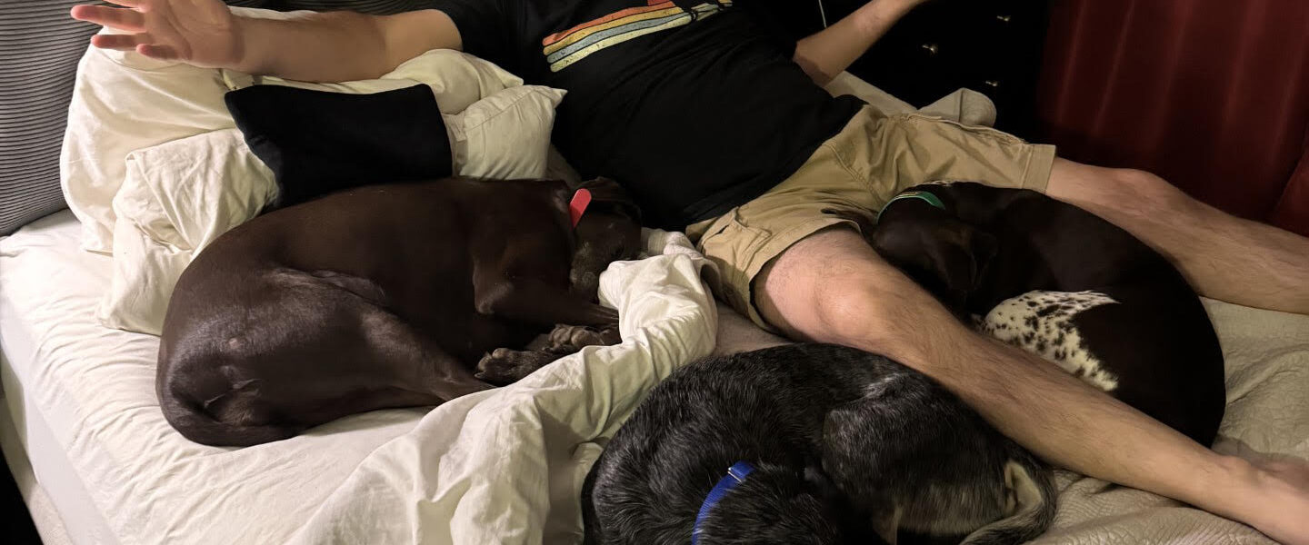 Here’s the rub: My dogs are bed hogs. They also like to flank me and don’t usually want to be